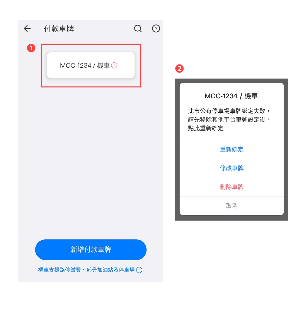 3. 點擊「新增綁定」,選擇車種並輸入車牌號碼,即可顯示此車牌之無卡停車綁定業者。